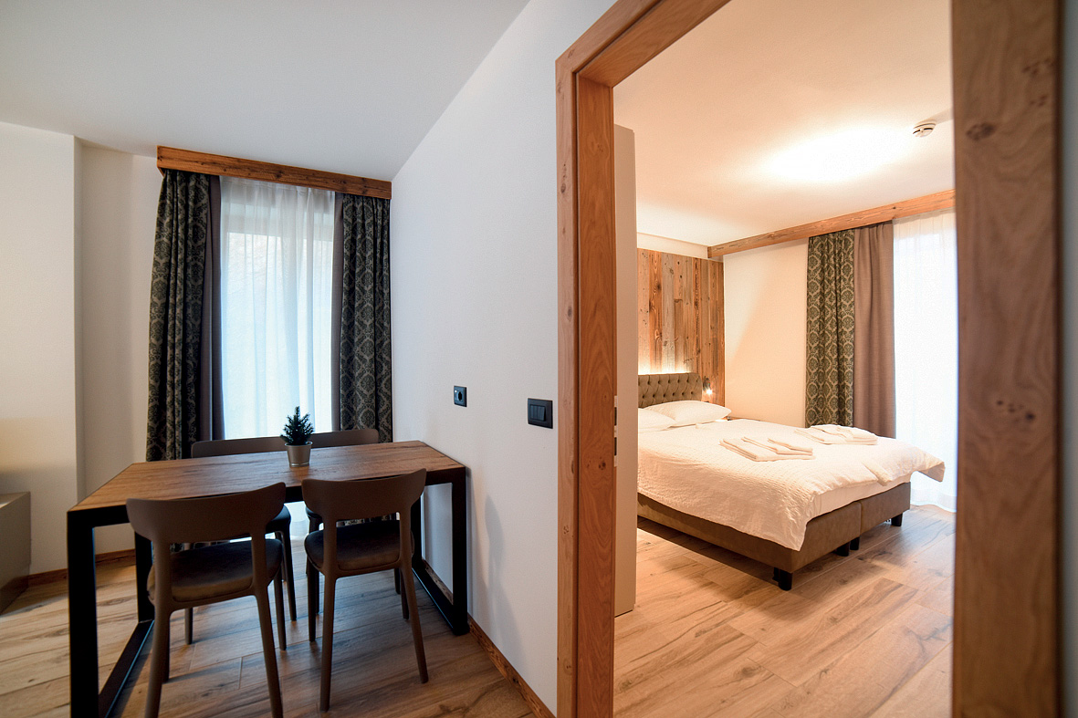 • kompletně nová residence s naprosto bezkonkurenční lyžařskou polohou u nástupní stanice kabinové lanovky z Pejo Fonti