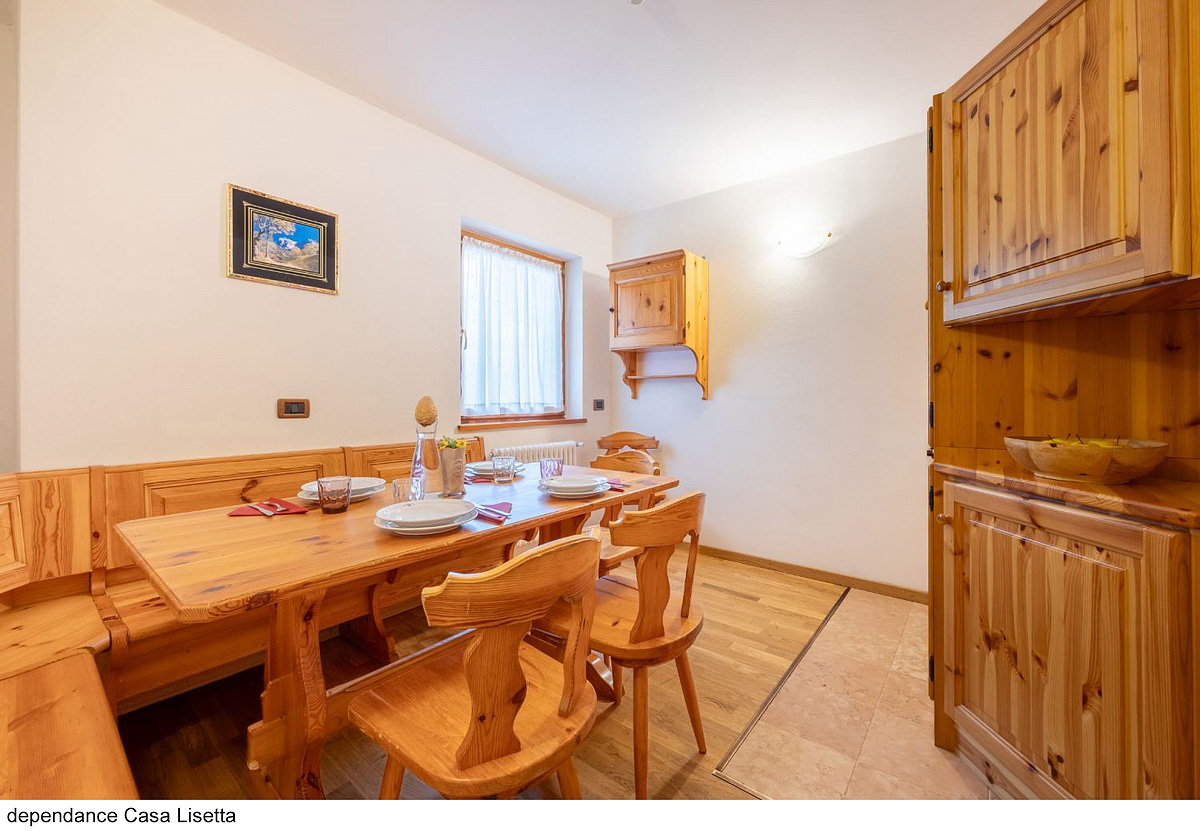 40 - 45 m² - 1 ložnice s manželskou postelí a palandou, obývací pokoj s kuchyňským koutem, sociální zařízení, balkon; apartmány se nachází v sousední Casa Lisetta