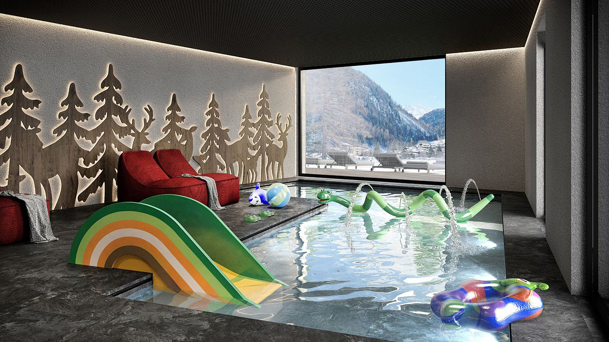 venkovní bazén*##, krytý bazén*## s relaxačním koutem*##, dětský bazén*##, rodinná sauna*##, 2x vířivka pro 1 osobu*#, sauna*#, pára*#, ledová mlha*#, multifunkční sprcha*#, horizontální solárium*, horské sluníčko*, relaxační koutek s lehátky*#, Kneippův chodník*#, senná terapie*#, biliár*, stolní fotbal*; služby označené # jsou přístupné pro dospělé od 18 let; služby označené ## se nacházejí v sousední hotelové budově