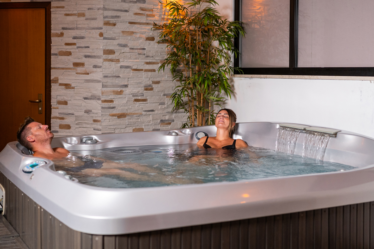 vířivka až pro 5 osob#, finská sauna#, biosauna#, pára#, multifunkční sprcha#, relaxační koutek s lehátky#; služby označené # nemohou využívat osoby do 18 let