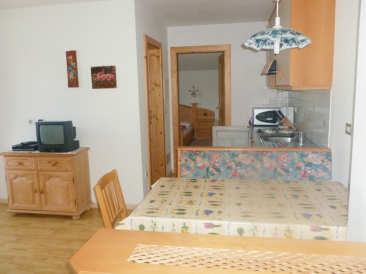 bilo 3+1 - 45 m² - 1 ložnice s manželskou postelí a rozkládacím gaučem pro 1 - 2 osoby, obývací pokoj s kuchyňským koutem, sociální zařízení, balkon; maximální obsazenost jsou 3 dospělé osoby nebo 2 dospělé osoby a 2 děti do nedovršených 13 let