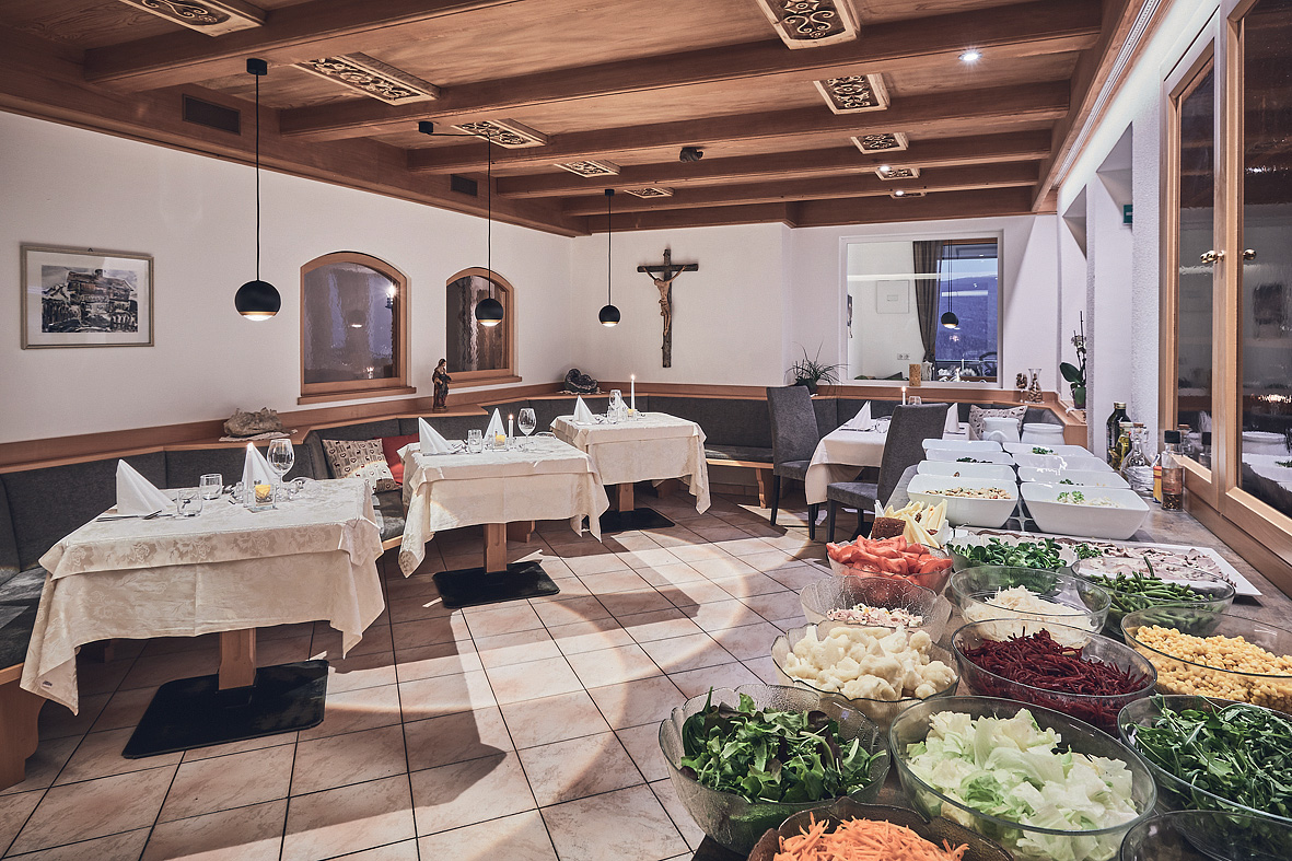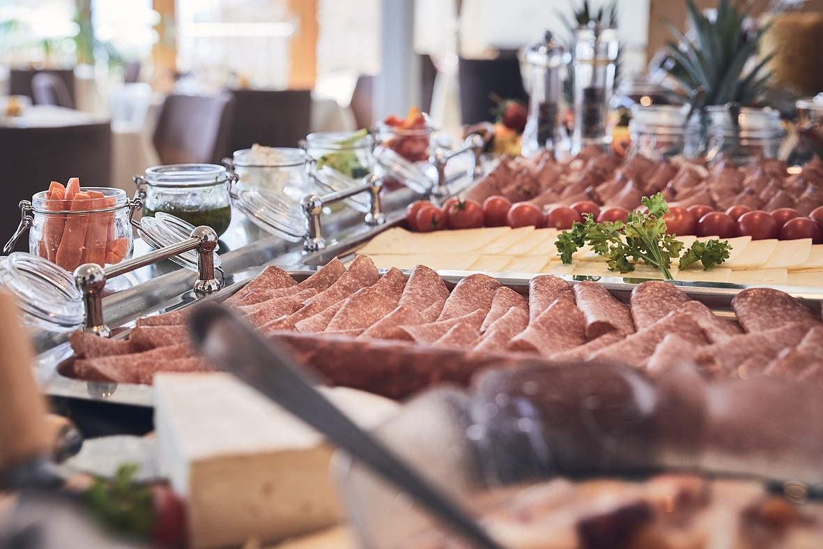 servírované menu - polévka, teplý předkrm, hlavní jídlo s přílohou, dezert, salátový bufet, nápoje za poplatek; 1x týdně dezerty formou bufetu
