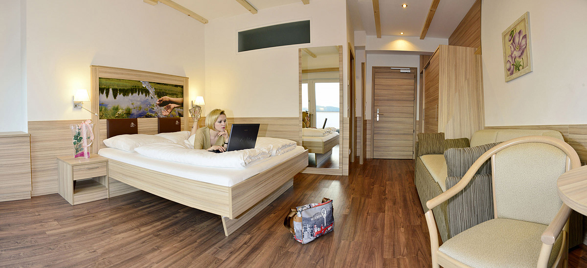24 m² - pokoj s manželskou postelí a rozkládacím gaučem pro 1 až 2 osoby, sociální zařízeni, balkon