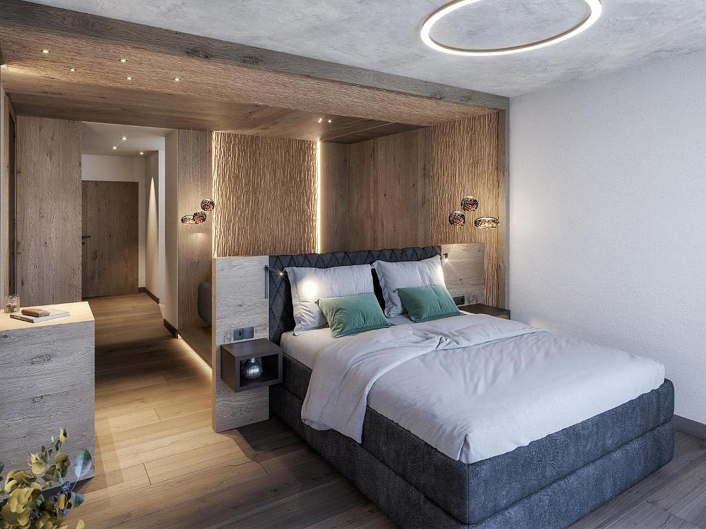 21 až 27 m² - pokoj s manželskou postelí a rozkládacím gaučem pro 1 až 2 osoby, sociální zařízení, balkon s panoramatickým výhledem na hory