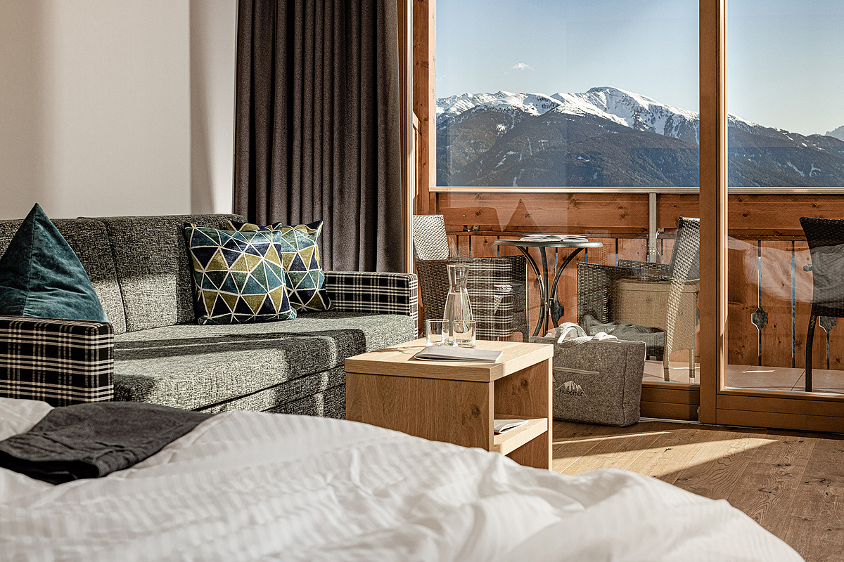 31 m² - pokoj s manželskou postelí, sociální zařízení se sprchou, balkon s výhledem na hory