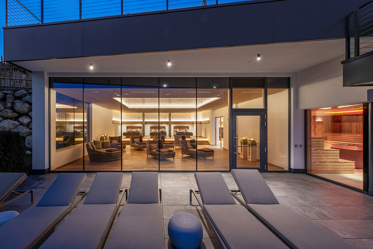 nové exclusivní SPA s infinity bazénem 12 x 5 m s protiproudem, umělým vodopádem a lehátky, relaxační zónou, dětský bazén, 5x sauna (finská 90°C, bylinková 70°C, bio 50-60°C), pára (40-50°C), infrasauna (50°C), horizontální solárium*, relaxační koutek s lehátky, masáže*, široké kosmetické služby*, sál na cvičení, hodiny jógy, stolní fotbálek