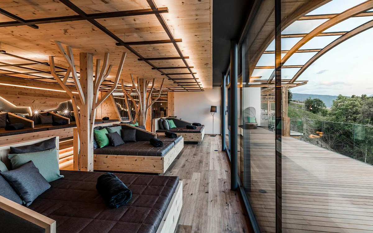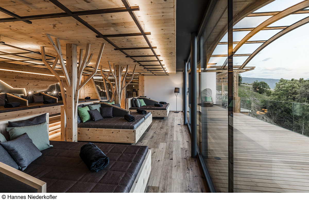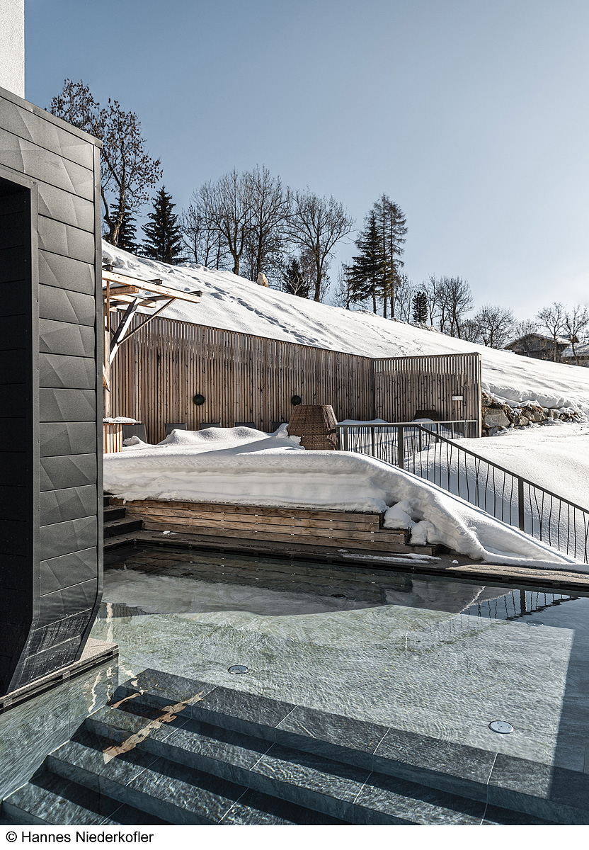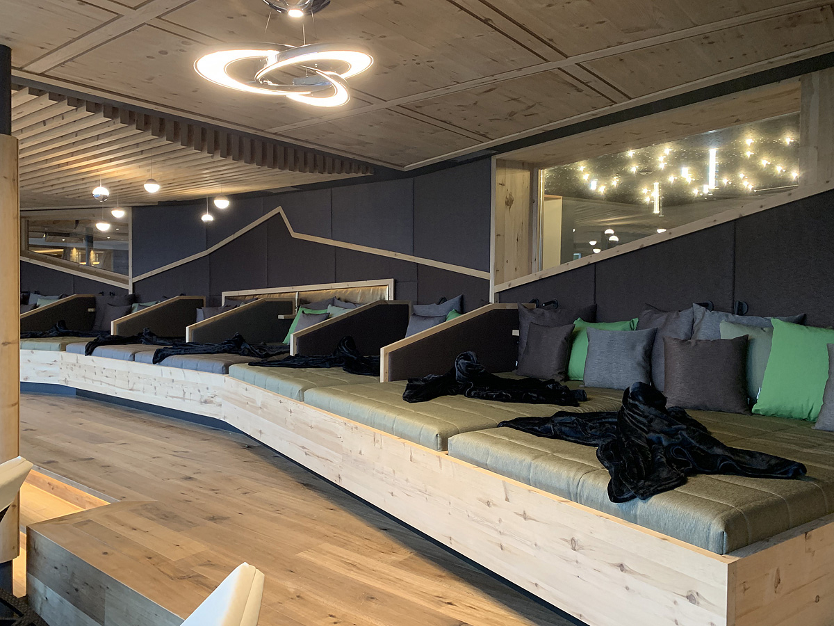 bazén 11 x 6 m, venkovní vyhřívaný bazén 18 x 8 m, dětský bazének, vířivka, finská sauna#, relaxační koutek s lehátky#, masáže*#, kosmetické služby*#; velká a nadstandardně vybavená posilovna, stolní tenis; služby označené # jsou dětem přístupné až od 15 let