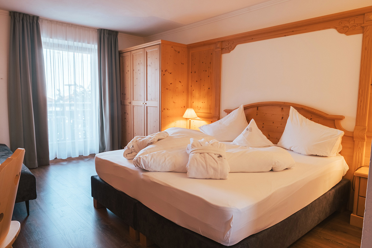 pokoj s manželskou postelí či 2 samostatnými lůžky, 3. lůžko formou rozkládacího gauče; vždy balkon