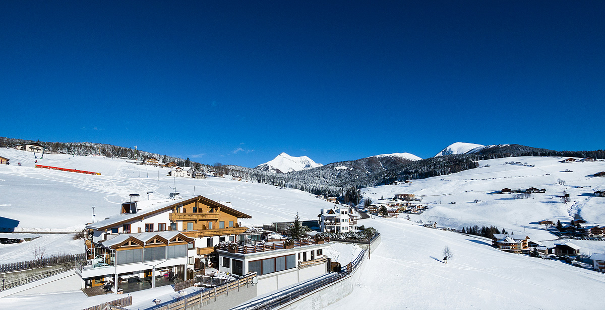 Maranza, centrum 400 m, skiareál Gitschberg / Jochtal - 200 m / sjezdovka, resp. 600 m / nástupní stanice kabinové lanovky, za dobrých sněhových podmínek příjezd na lyžích možný až přímo k hotelu