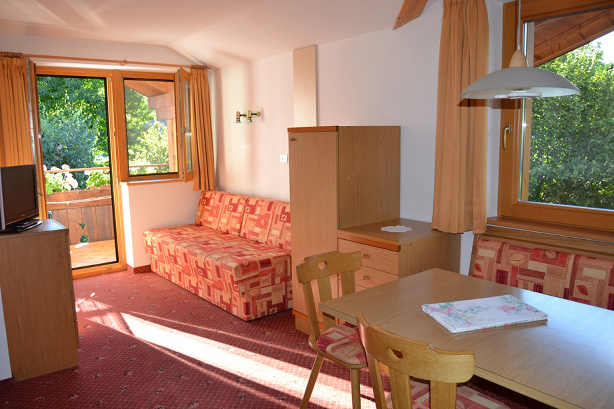 40 m² - 1 ložnice s manželskou postelí, obývací pokoj s rozkládacím gaučem pro 2 osoby a rozkládacím gaučem pro 1 osobu, chodba s malou kuchyňkou, sociální zařízení; apartmán je situován v podkroví