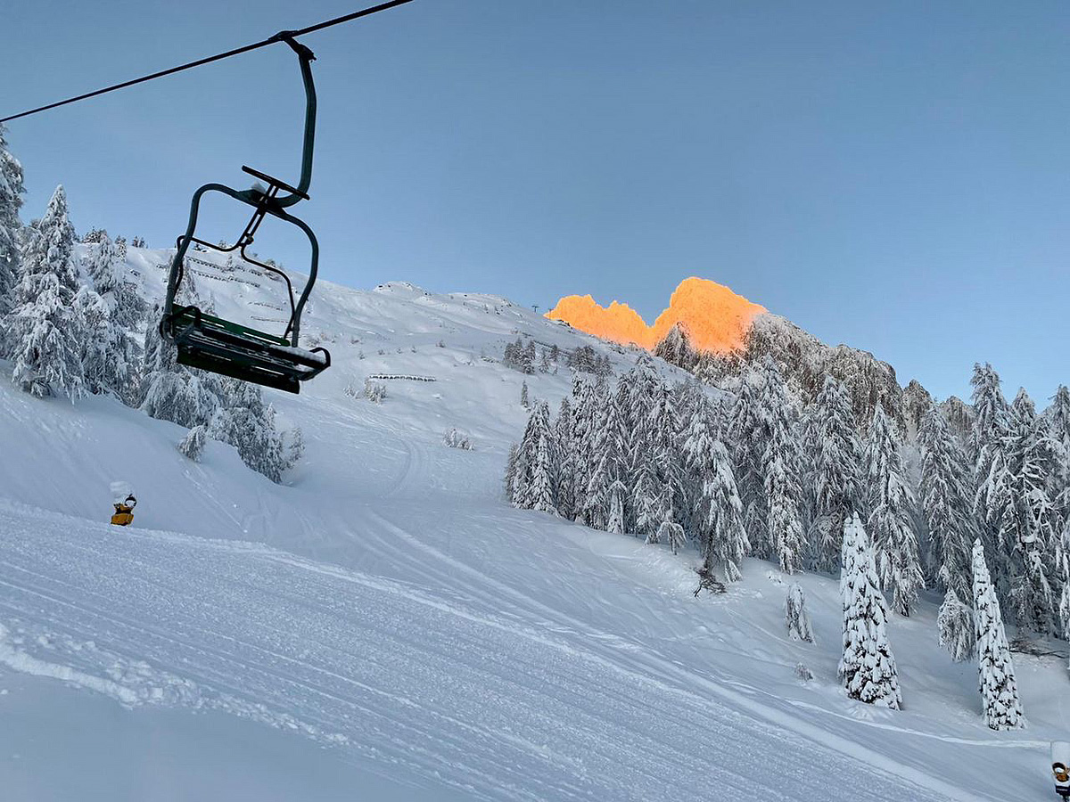 Nová červená sjezdovka Fantasia 2000 z vrcholu Cima Tognola (2 348 m) vede ke kabinové lanovce Tognola (1 411 m n. m.).