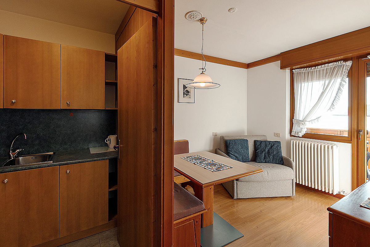20 m² - obývací pokoj s rozkládacím gaučem pro 2 osoby a případně 1 samostatným lůžkem, samostatná kuchyňka, předsíň (jen u některých apartmánů), sociální zařízení se sprchou či vanou, balkon