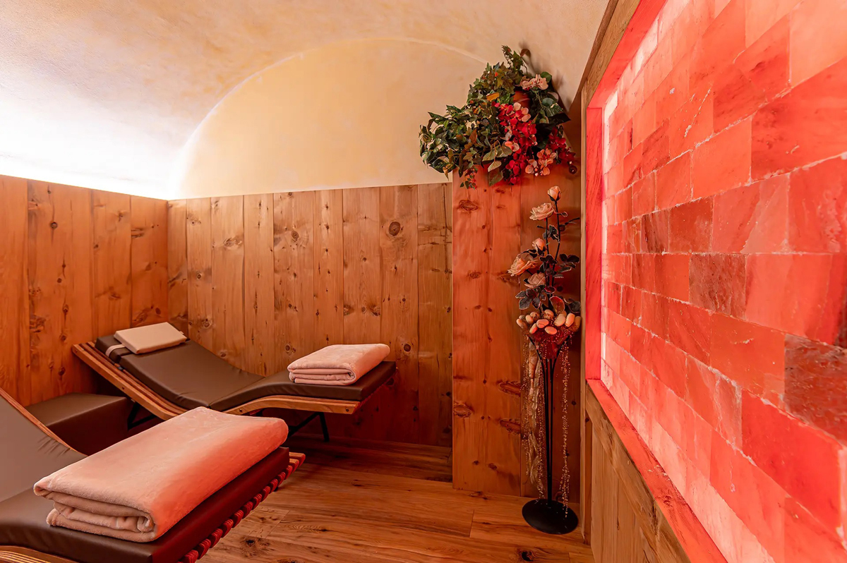 finská sauna#, alpská sauna#, pára#, relaxační koutek se solnými kameny#, služby označené # mohou využívat děti až od 15 let