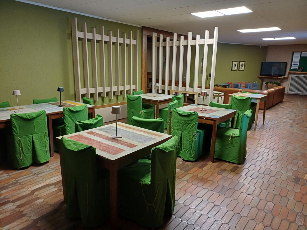 servírované menu či formou bufetu s výběrem z 1 či 2 teplých předkrmů a 1 či 2 hlavních jídel s přílohou, zpravidla salát formou bufetu, servírovaný dezert či ovoce, nápoje za poplatek