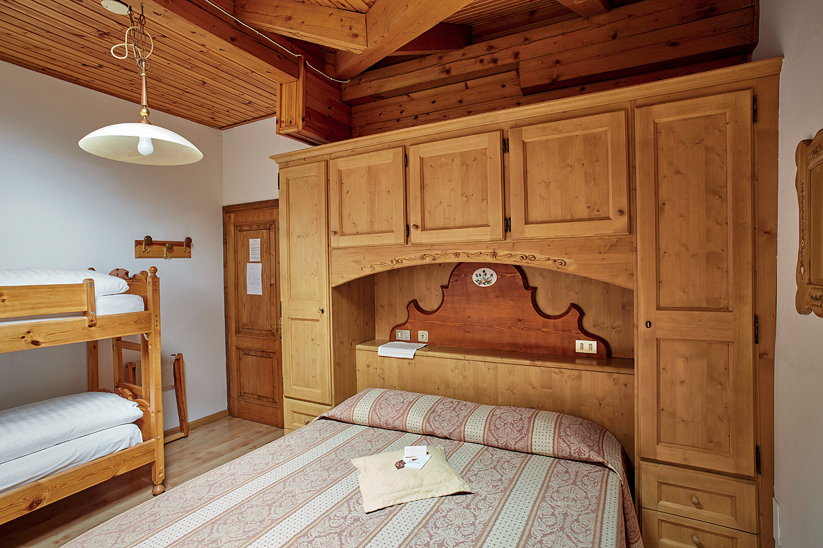 pokoj s manželskou postelí či 2 samostatnými lůžky a případně 3. pevným lůžkem či palandou (vždy u čtyřlůžkových pokojů), sociální zařízení, zřídka balkon