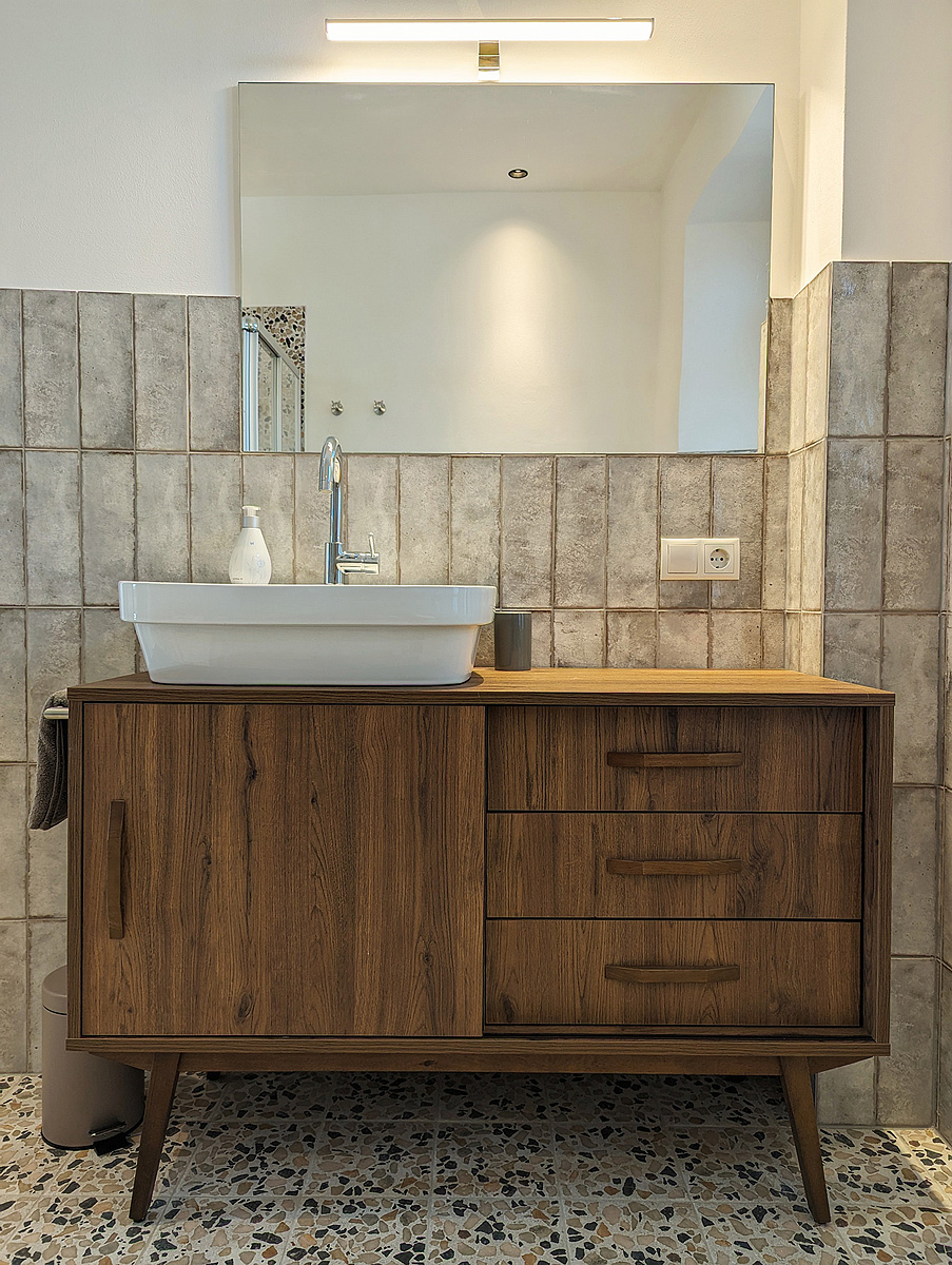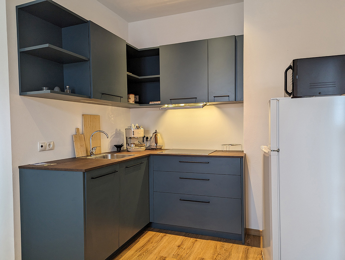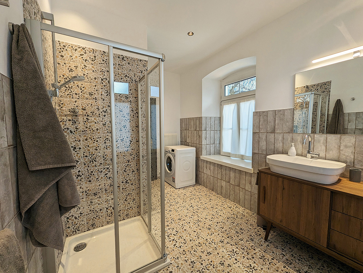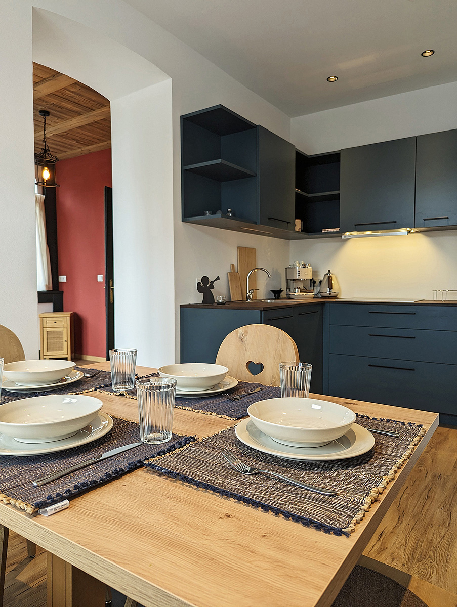 60 m² - 1 ložnice s manželskou postelí a odděleným malým prostorem s palandou pro 2 osoby, obývací pokoj s gaučem, kuchyň s jídelním stolem, prostorné sociální zařízení se sprchou, malý balkon; apartmán se nachází v samostatně stojící budově