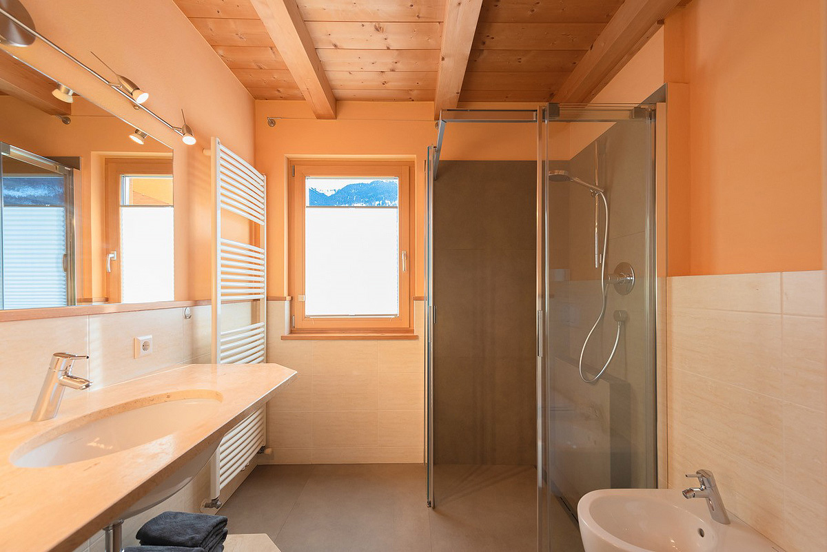 45 m² - 1 ložnice s manželskou postelí a samostatným lůžkem, obývací pokoj s kuchyňským koutem, sociální zařízení se sprchou, okno s panoramatickým výhledem