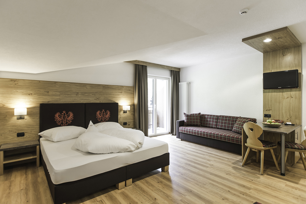 24 m² - pokoj s manželskou postelí a rozkládacím gaučem pro 1 osobu, sociální zařízení, balkon