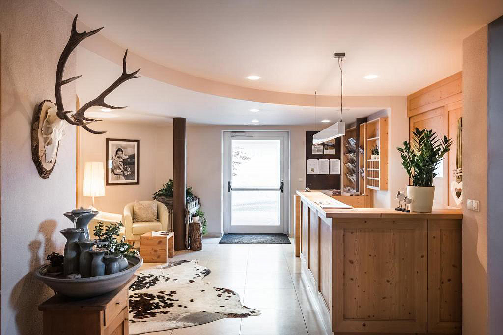 recepce / lobby s krbem, bar, jídelna pro snídaně, wi-fi připojení k internetu, úschovna lyží a lyžařských bot, vyhrazená parkovací stání