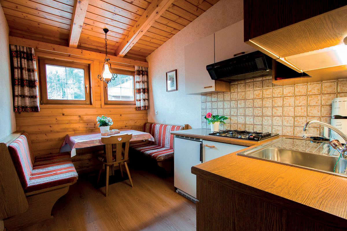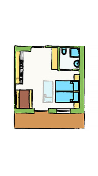 mono 3 - 32 m² - obývací pokoj s kuchyňským koutem, manželskou postelí a 1 přistýlkou, sociální zařízení, balkon