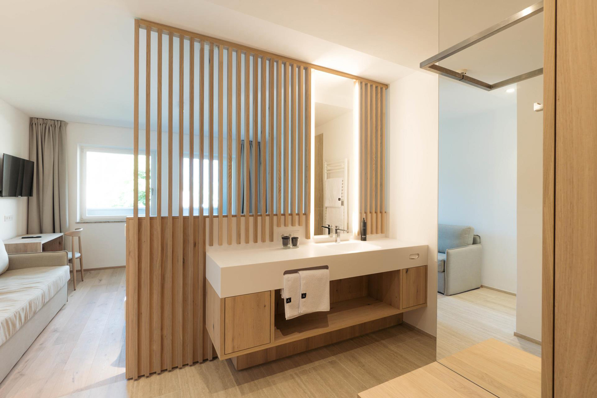 38 až 44 m² - pokoj s manželskou postelí a rozkládacím gaučem pro 1 osobu, pokoj s 2 samostatnými lůžky, sociální zařízení, balkon