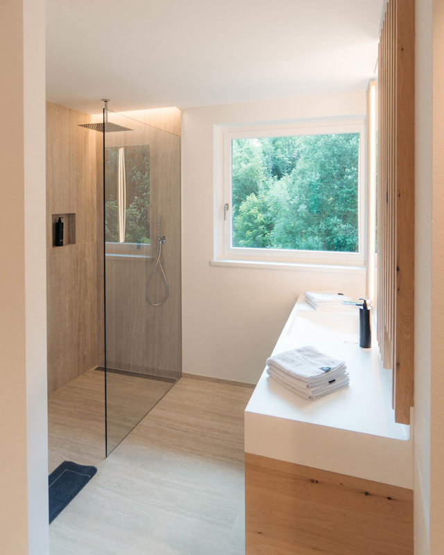 45 m² – 1 ložnice s manželskou postelí, pokoj s rozkládacím gaučem pro 2 osoby a rozkládacím gaučem pro 1 osobu, sociální zařízení s vanou, samostatné WC, terasa