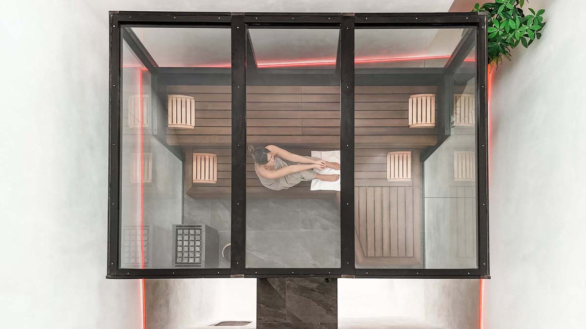 finská sauna#, pára#, relaxační koutek# s lehátky, posilovna; služby označené # mohou využívat osoby od 16 let