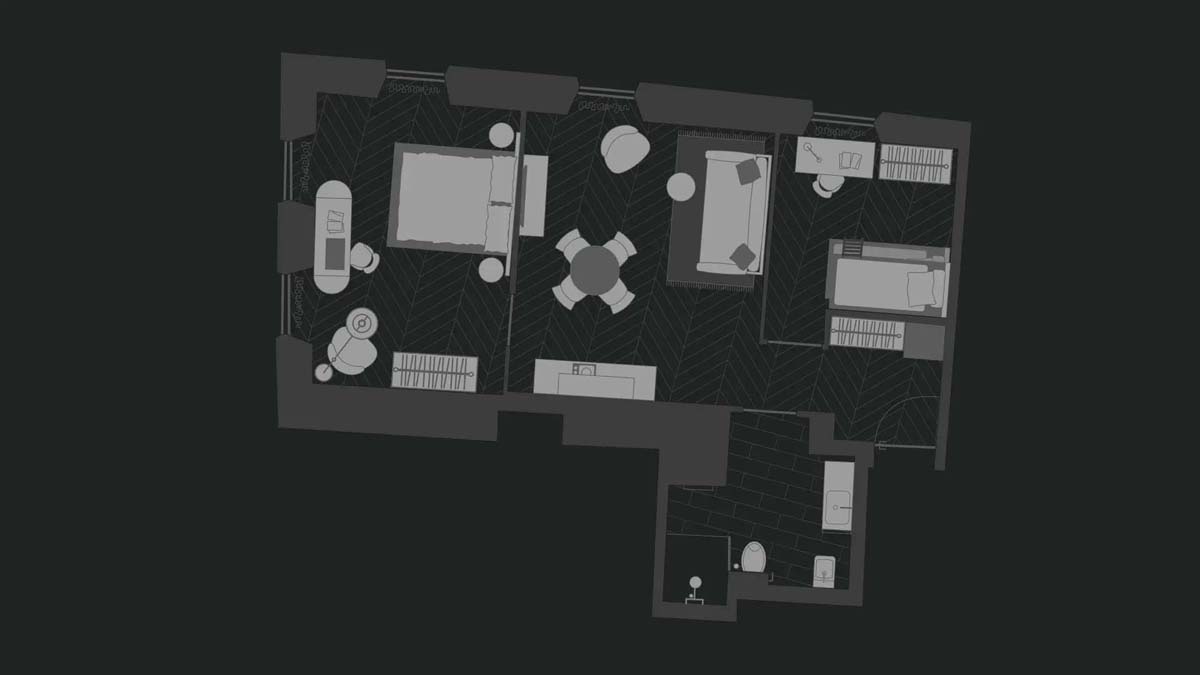 60 m² – 1 ložnice s manželskou postelí, obývací pokoj s kuchyňským koutem a manželskou postelí o šíři 140 cm, sociální zařízení; případně 1 ložnice s palandou, obývací pokoj s kuchyňským koutem a částečně oddělenou manželskou postelí; případně obývací pokoj s kuchyňským koutem, částečně oddělenou manželskou postelí a rozkládacím gaučem pro 2 osoby, sociální zařízení; na vyžádání lze přidat 5. lůžko formou přistýlky