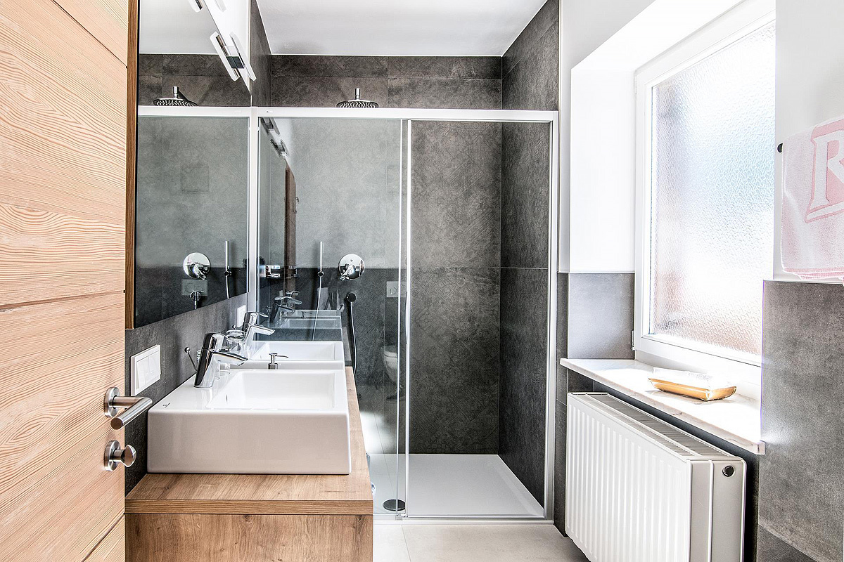 50 až 63 m² – 2 x pokoj s manželskou postelí či pokoj s manželskou postelí a pokoj s 2 samostatnými lůžky, sociální zařízení se sprchou, balkon