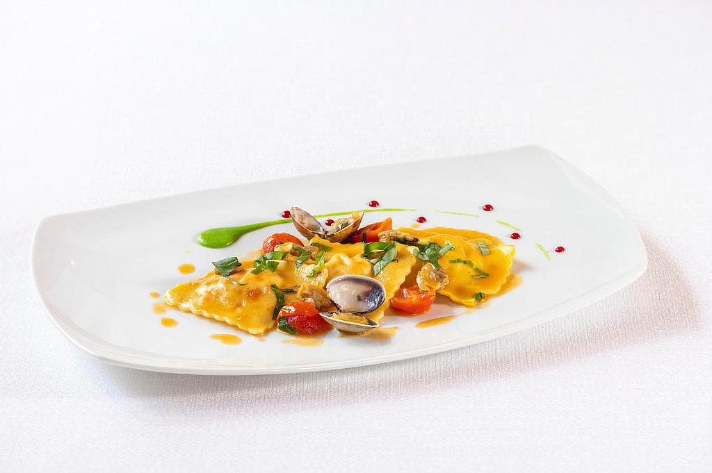 servírované menu s výběrem ze 2 až 3 teplých předkrmů, 2 až 3 hlavních jídel s přílohou, servírovaný dezert, salátový bufet, nápoje za poplatek