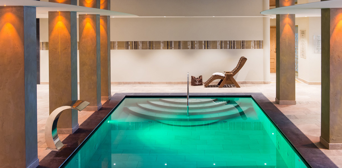 bazén 12 x 5 m s umělým vodopádem, vířivka# až pro 8 osob, finská sauna#, biosauna#, pára#, Kneippův chodník#, relaxační koutek# s lehátky, masáže#*, kosmetické služby#* ; služby označené # mohou využívat děti do 14 let