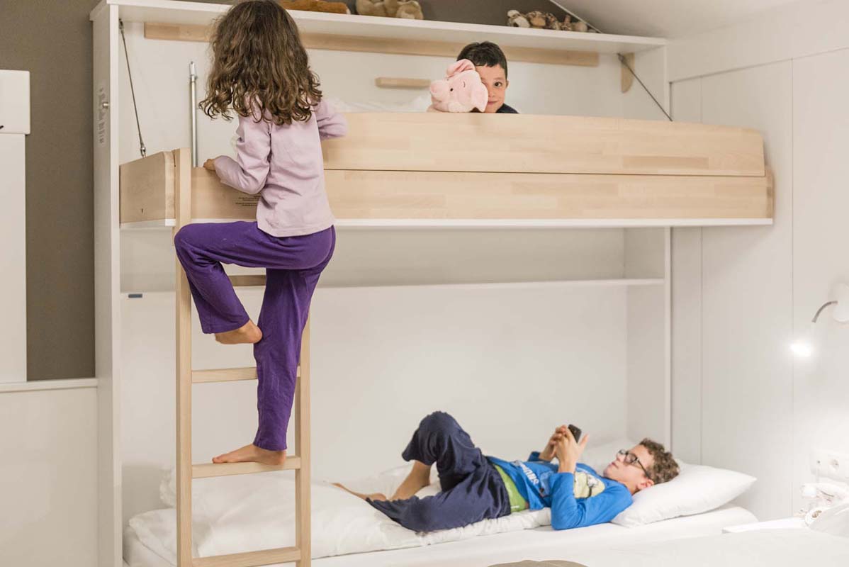 35 až 45 m² - pokoj s manželskou postelí a 2 samostatnými lůžky, pokoj s rozkládacím gaučem pro 2 osoby či 2 palandami, sociální zařízení