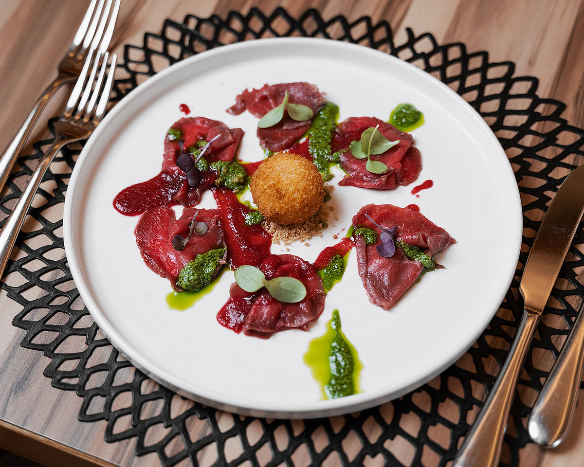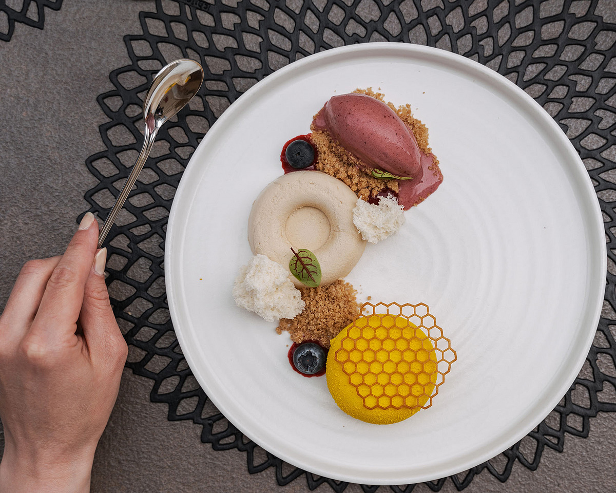 servírované menu s výběrem ze 2 polévek, 3 teplých předkrmů a 3 hlavních jídel s přílohou, servírovaný dezert, salátový bufet, nápoje za poplatek; 1x týdně typická místní večeře