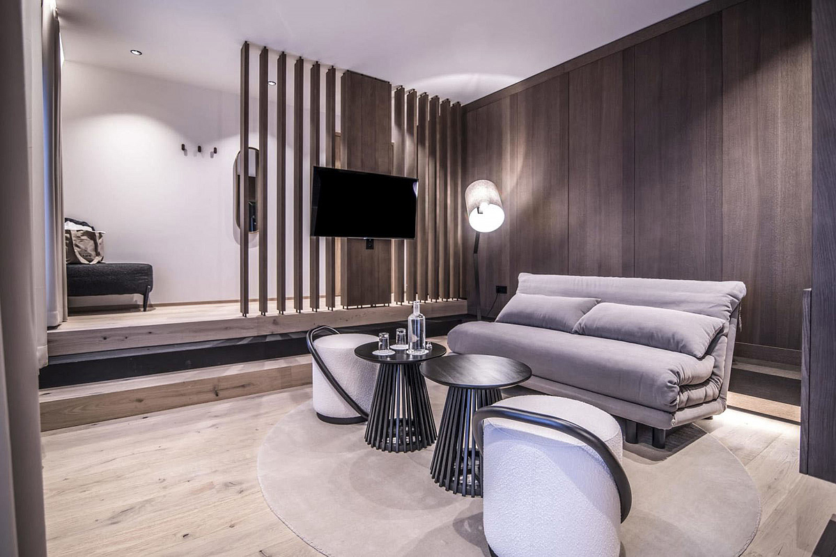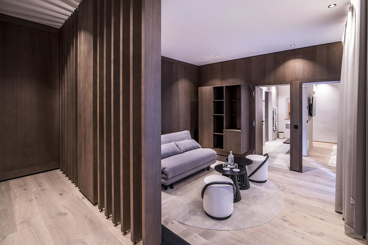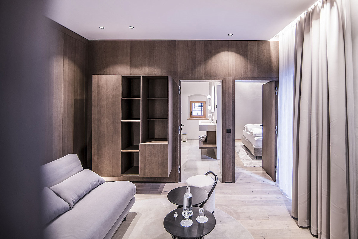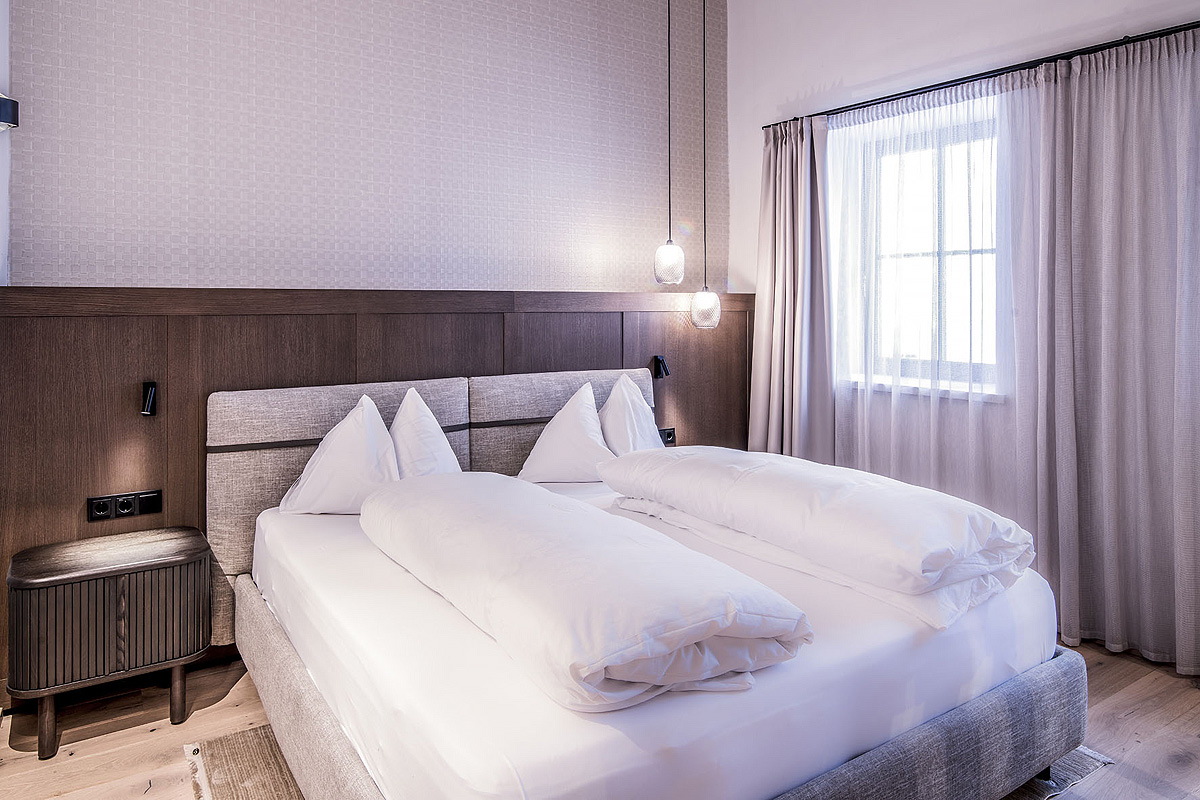 TV sat., telefon, fén, trezor, wi-fi připojení k internetu, lednice (pouze typologie Suite 4 Fugger II) župany do wellness