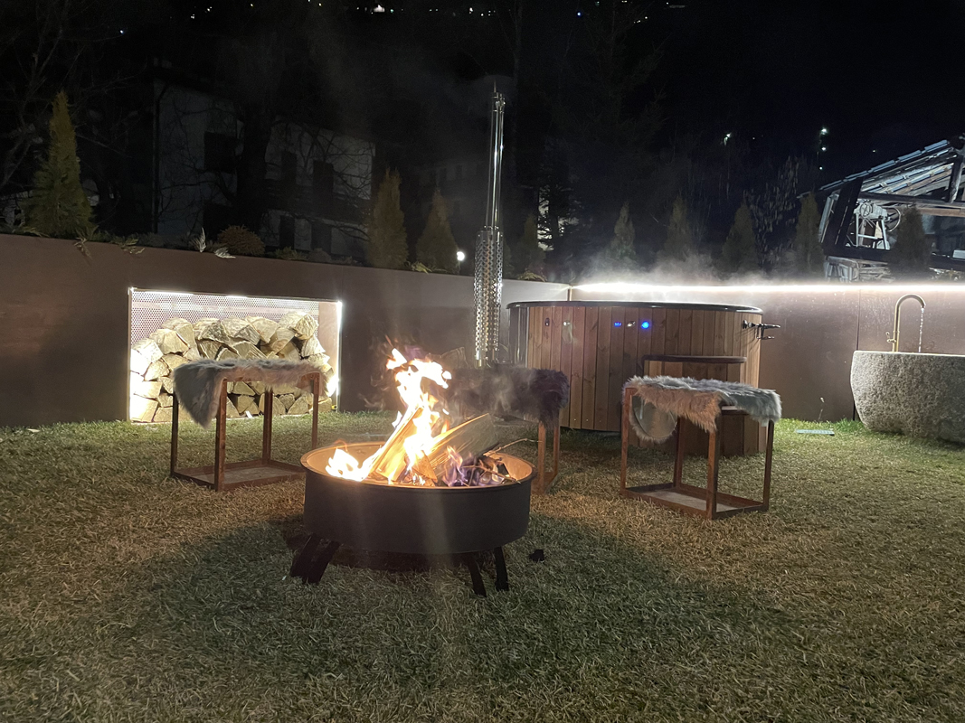 vnitřní vířivka* až pro 4 osoby, venkovní vířivka* pro 2 osoby, venkovní sauna*, krytý relaxační kout* s lehátky a bylinkovými čaji, venkovní relaxační zóna* s lehátky, Kneippův chodník*, šatna se sociálním zařízením*