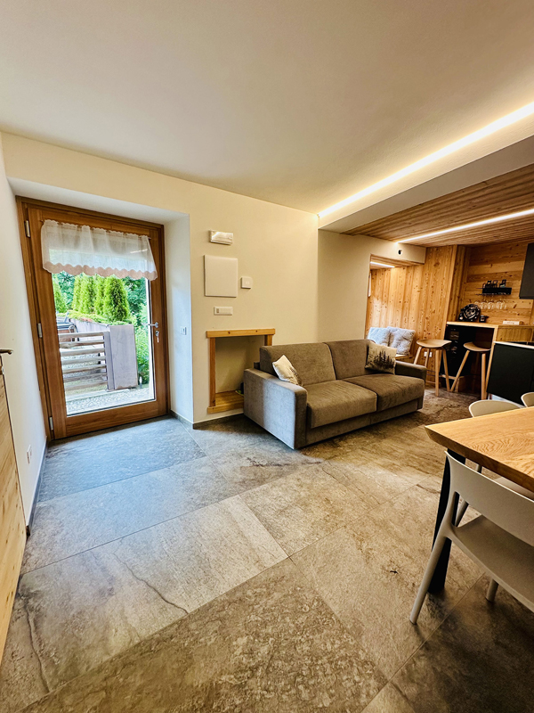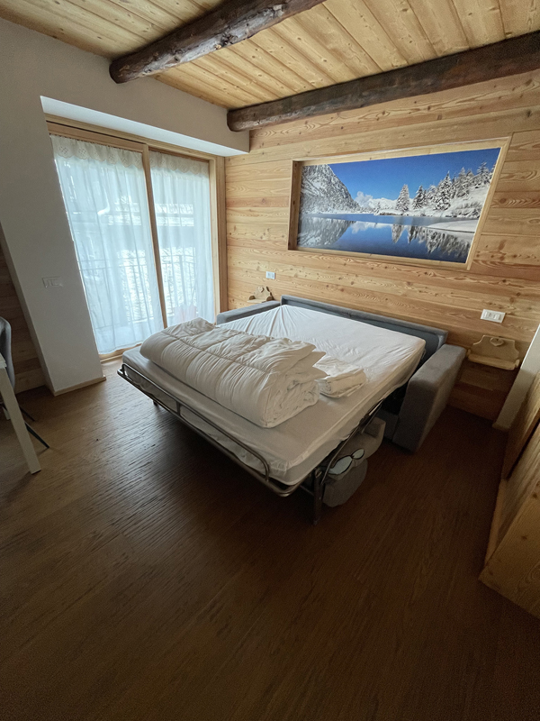 1 ložnice s manželskou postelí, 1 ložnice s palandou, obývací pokoj s kuchyňským koutem a rozkládacím gaučem pro 2 osoby, sociální zařízení, balkon či otevřená malá terasa u vchodu; maximální obsazenost apartmánu jsou 4 dospělé osoby a 2 děti do nedovršených 13 let