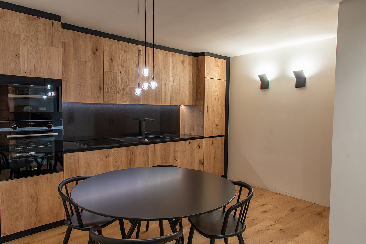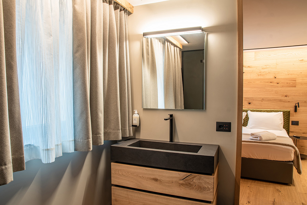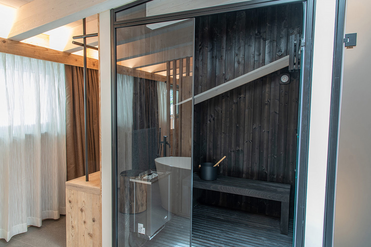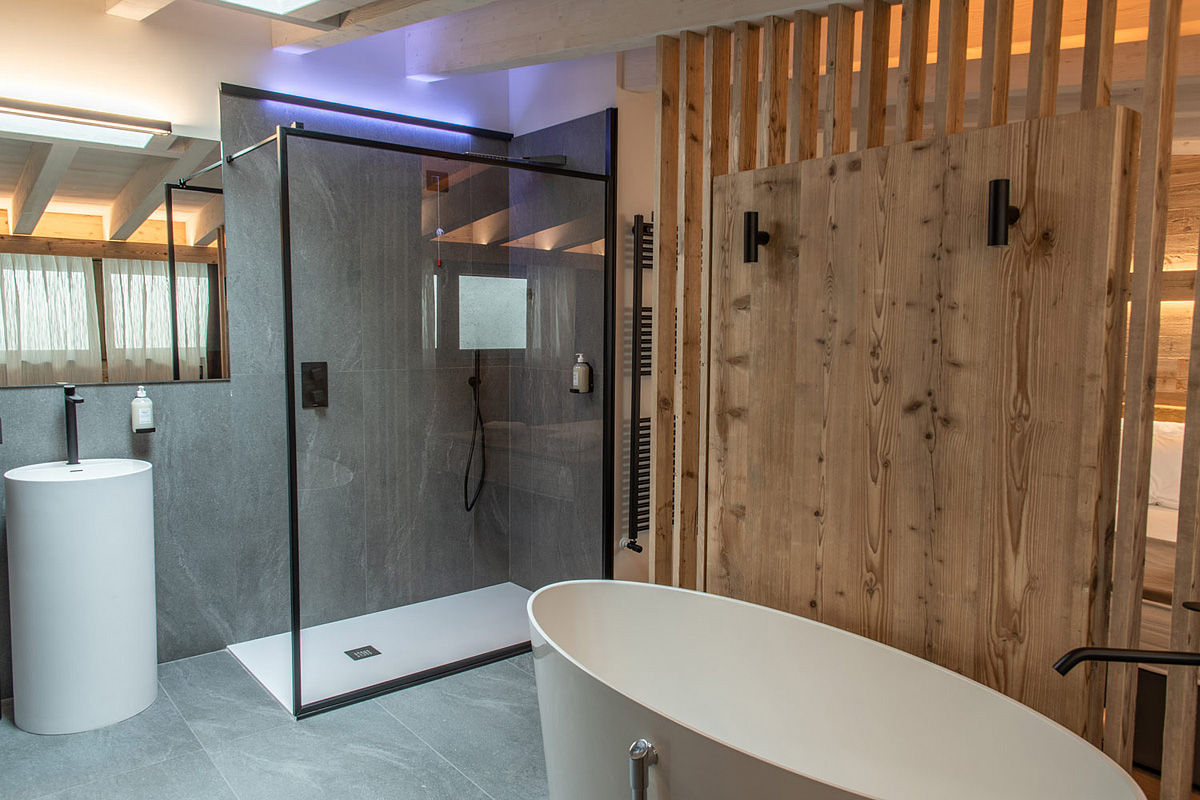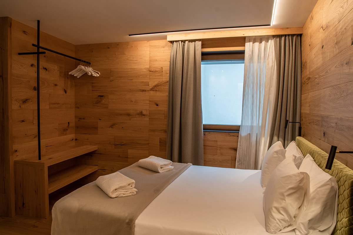 50 až 60 m² - 1 ložnice s manželskou postelí, obývací pokoj s kuchyňským koutem a rozkládacím gaučem pro 2 osoby, 2x sociální zařízení (1x s emoční sprchou), ve 2 apartmánech balkon, 1 podkrovní apartmán bez balkonu s interiérovou vanou a elektrickým krbem