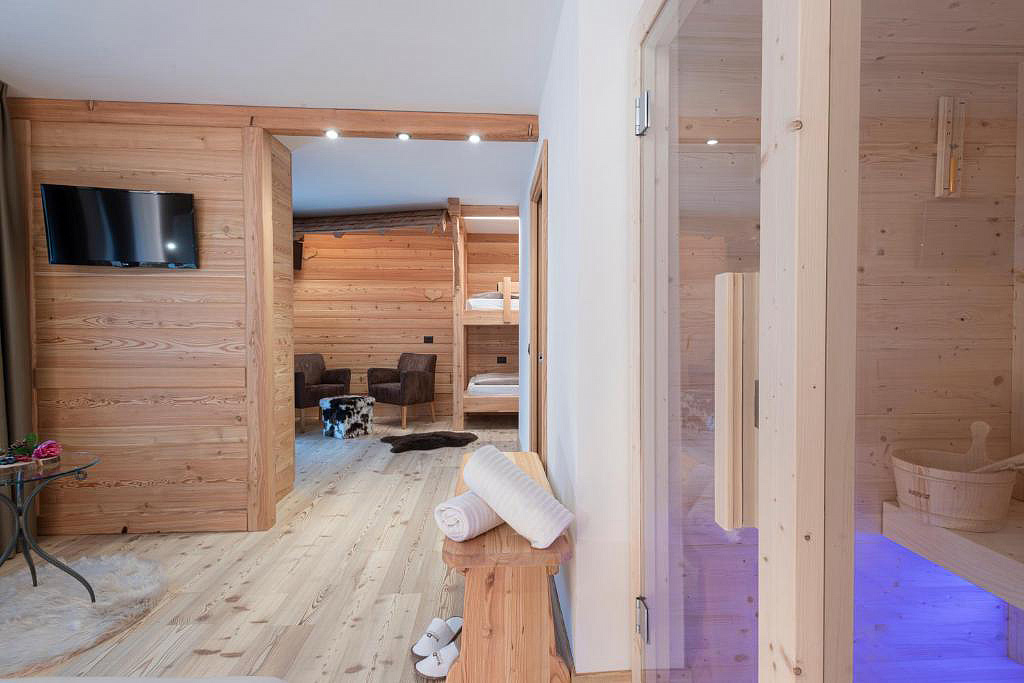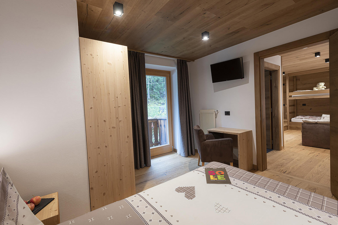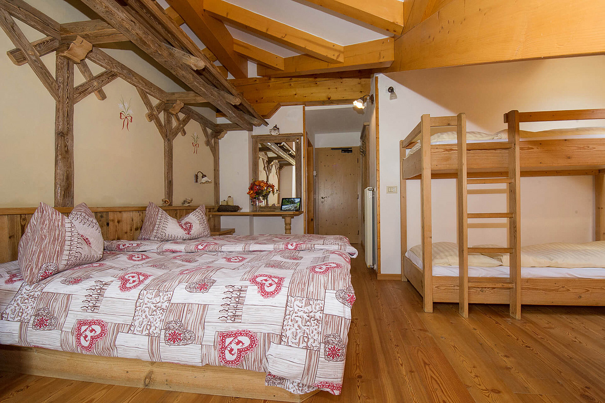 Family 3+1 - pokoj s manželskou postelí a případně rozkládacím gaučem, palandou či 1 až 2 pevnými lůžky pro 1 dospělou osobu a 1 dítě do nedovršených 12 let, sociální zařízení, balkon; minimální obsazenost 4 osoby; pokoje mohou být dvoupatrové