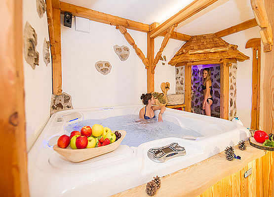 vířivka*#, venkovní bio sauna*#, Kneippův chodník*#, relaxační koutek s lehátky*#, posilovna; služby označené # mohou využívat děti až od 16 let; v rámci pobytu 1x 30minutový vstup zdarma, další vstup za poplatek 5 €