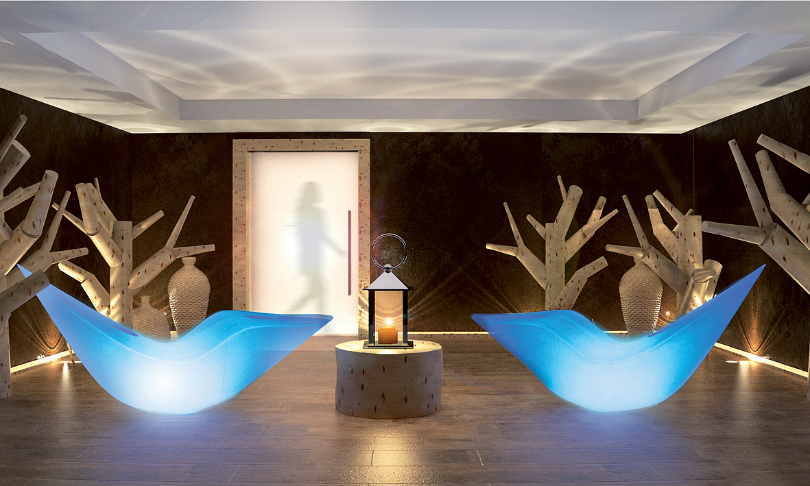venkovní vířivka# až pro 12 osob, finská sauna#, venkovní finská sauna#, biosauna#, pára#, infrakabina#, atypická ledová lázeň#, 2x multifunkční sprcha#, relaxační koutek# s lehátky a vyhřívanými vodními lůžky, Kneippův chodník#, posilovna#; soukromý relaxační koutek#*; služby označené # mohou využívat jen osoby od 16 let