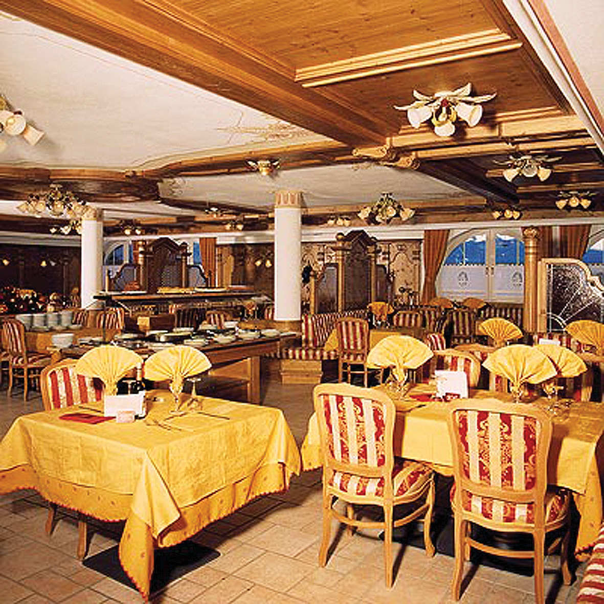 recepce / malá lobby / internet point*, restaurace s pecí vyhrazená pro hotelové hosty, restaurace / pizzerie / bar s pecí, TV sat. a DVD, společenská místnost s TV sat. a videem, wi-fi připojení k internetu, hotelový trezor, úschovna lyží, výtah, vyhrazené parkoviště (počet míst omezen; další parkování v blízkosti), garážová stání*