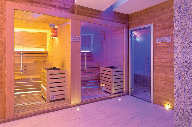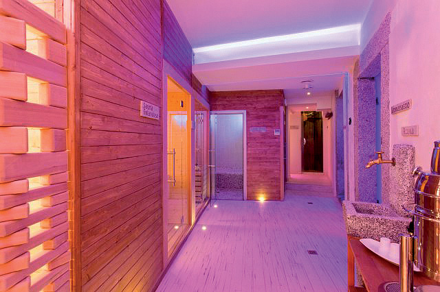 vířivka# až pro 6 osob, finská sauna#, bio sauna#, pára#, multifunkční sprcha#, relaxační koutek# s hudbou, 3 posilovací stroje#; služby označené # lze využívat v rámci fakultativní klubové karty v ceně 55 € / osoba / pobyt, případně i vstup za jednorázový poplatek; v rámci relaxačního centra jsou zdarma nabízeny též bylinkové čaje