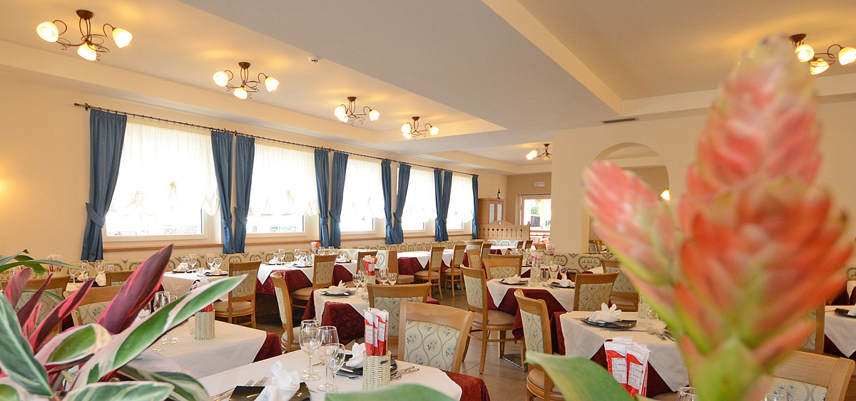 večeře - servírované menu s výběrem ze 3 teplých předkrmů a 3 hlavních jídel s přílohou, salátový bufet, servírovaný dezert, nápoje za poplatek; 1x týdně typicky místní večeře