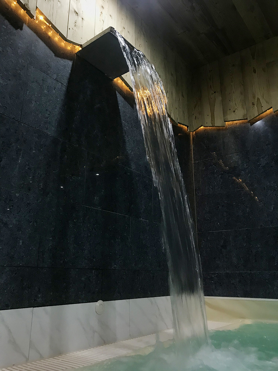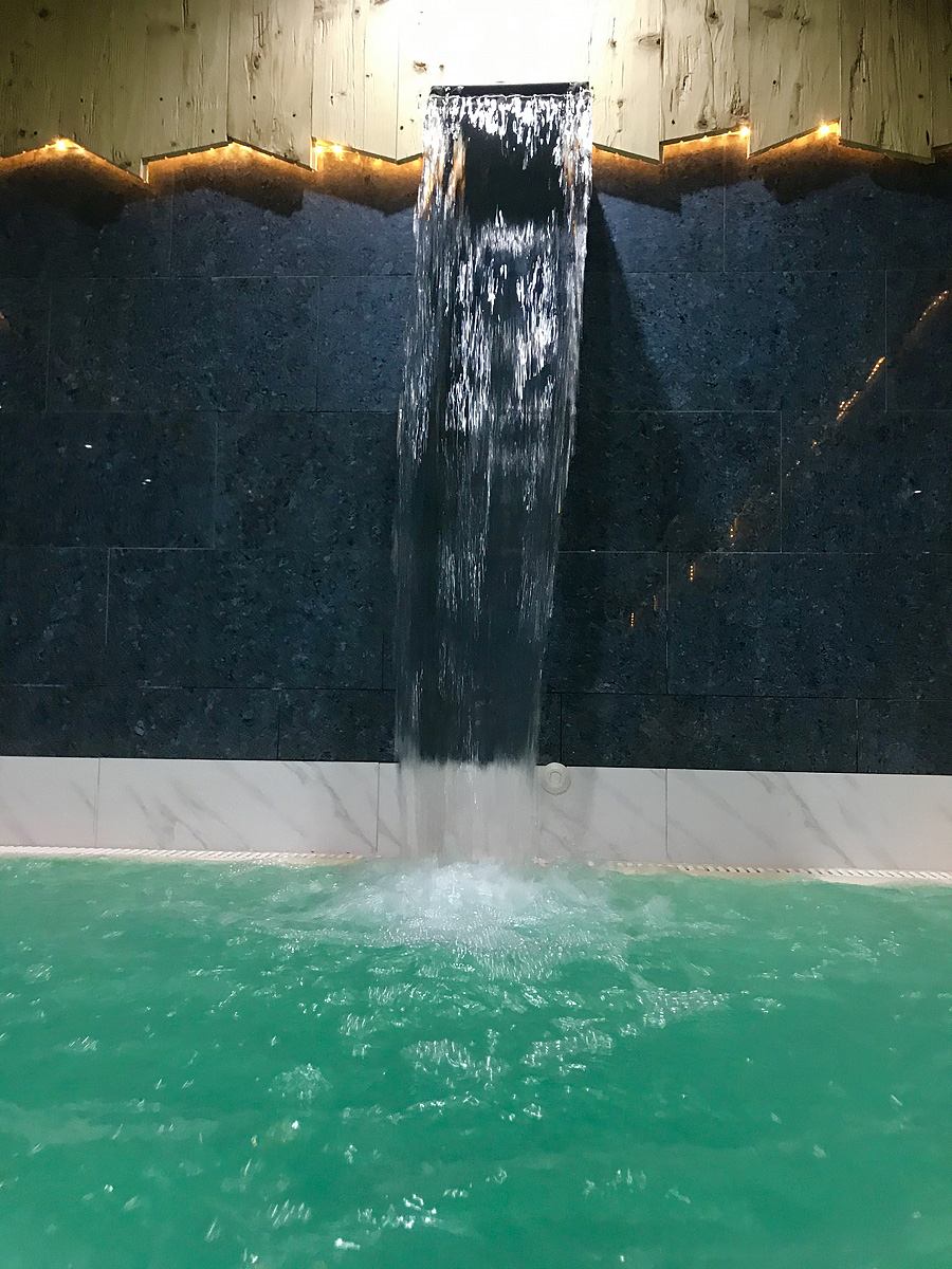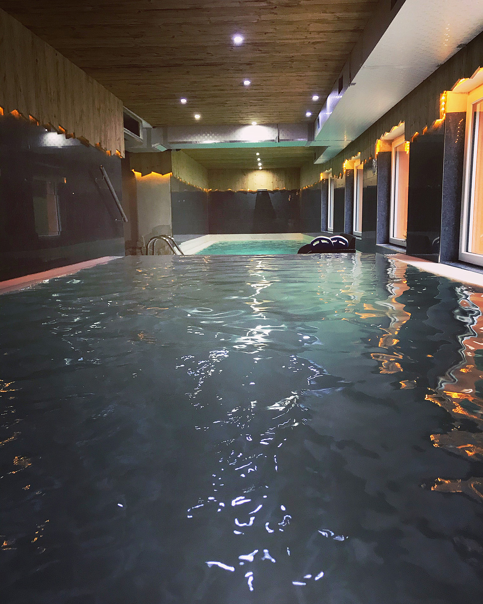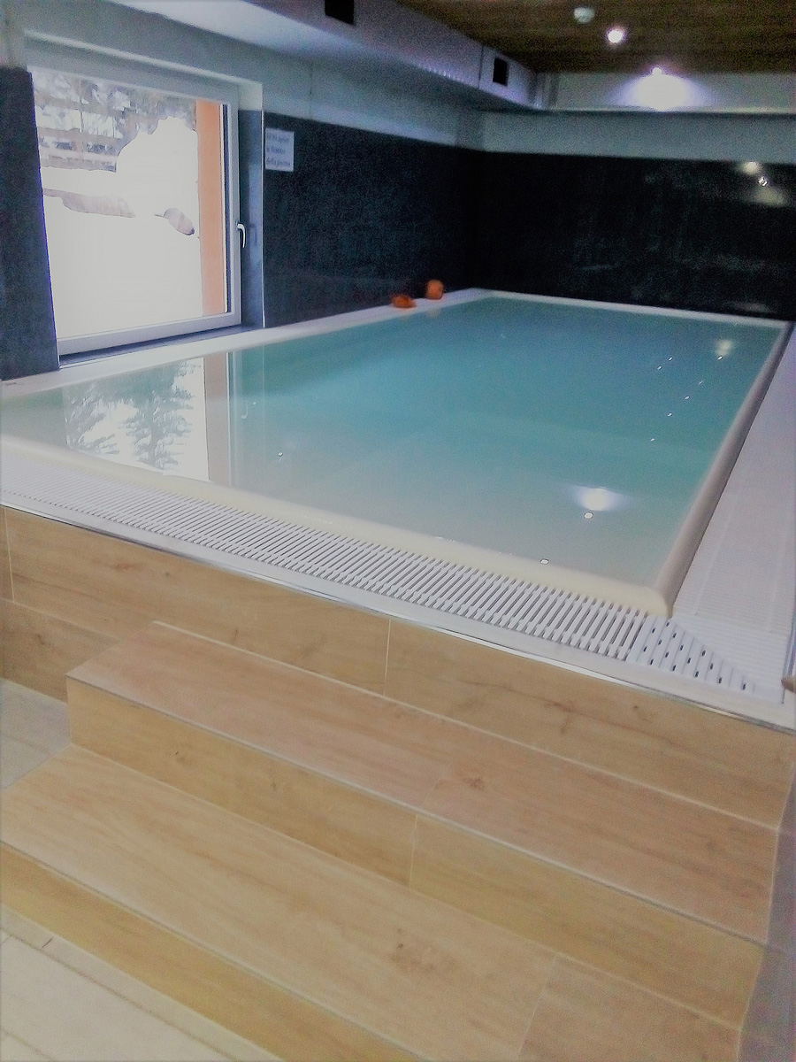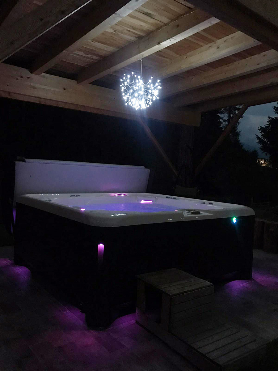 bazén 8 x 4 m se slanou vodou, 2x vířivka až pro 6 osob, sauna, pára, multifunkční sprcha, horské sluníčko*, relaxační koutek s lehátky, menší posilovna, stolní tenis, stolní fotbal
