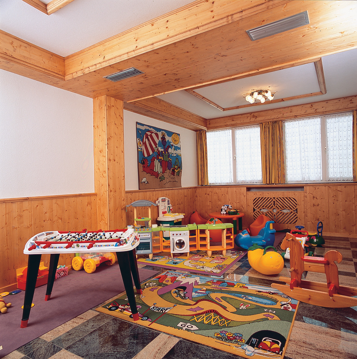recepce / velká lobby s pecí / wi-fi připojení k internetu, dětský koutek (do 10 let), videohry*, úschovna lyží a lyžařských bot, výtah, vyhrazené parkoviště (1 auto / apartmán), garážová stání*, pračka* a sušička*