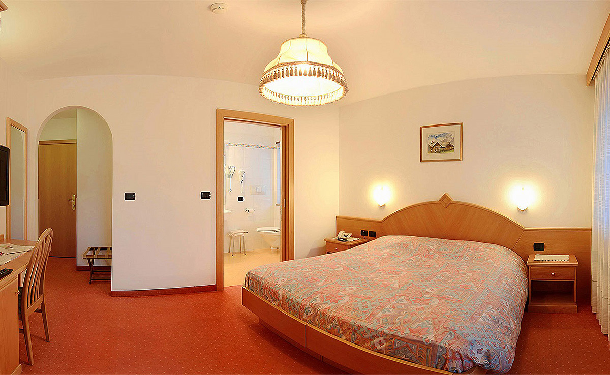 20 až 25 m²- pokoj s manželskou postelí a případně 1 samostatným lůžkem, čtyřlůžkové pokoje zpravidla s manželskou postelí velikosti 1,5 běžného lůžka (vhodné pro 2 děti do 12 let), sociální zařízení, balkon; výhled na hory