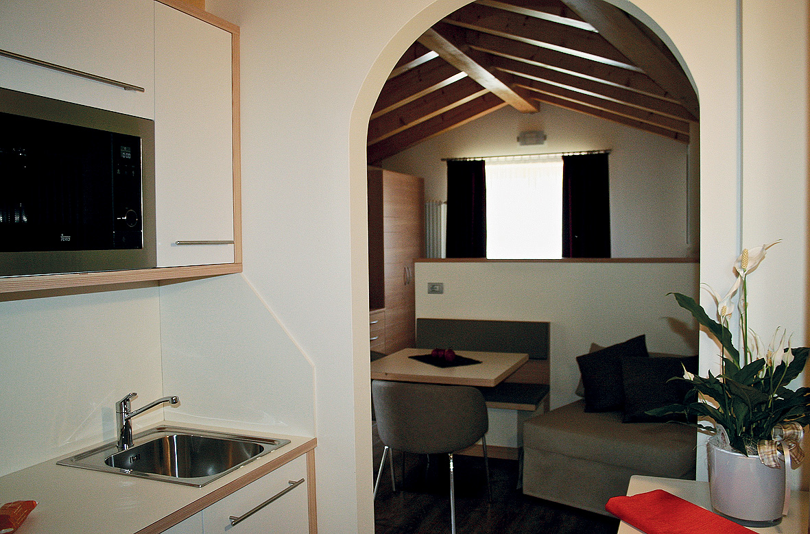 bilo 4 - 38 m² - 1 ložnice s manželskou postelí, obývací pokoj s kuchyňským koutem a rozkládacím gaučem pro 2 osoby, předsíň, sociální zařízení, balkon či terasa; na vyžádání bilo 4 Superior (větší sociální zařízení, menší obývací pokoj, nově vybavené)