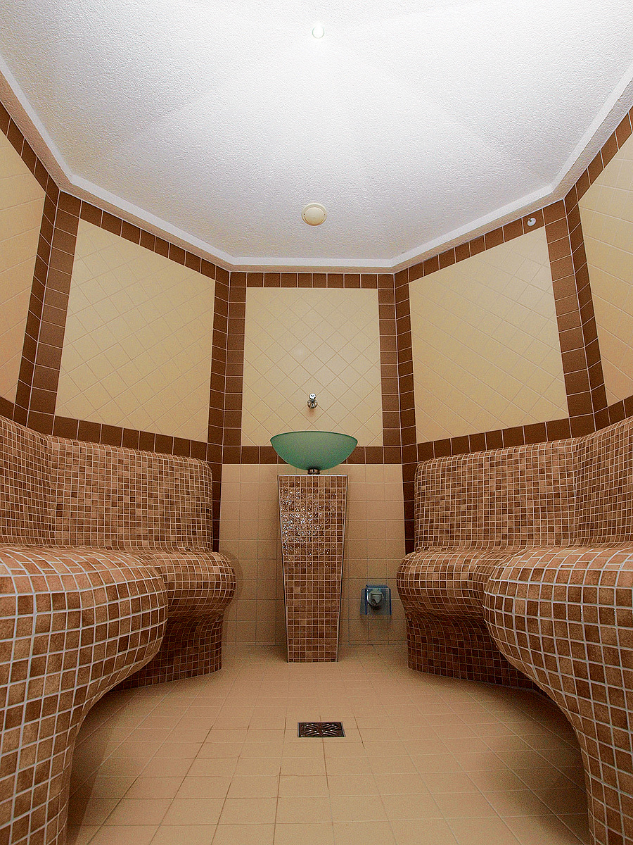 speciální parní vana#, sauna#, venkovní sauna#, biosauna#, pára#, atypická ledová lázeň#, multifunkční sprcha#, relaxační koutek# s lehátky, masáže*; nabídka Hotelu Nele - bazén 37 m² (do 16.30 hod. a od 18.30 hod.); služby označené # nemohou využívat děti do 10 let