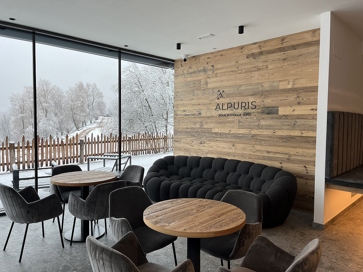 recepce, jídelna pro snídaně, bar, společenská místnost s krbem, úschovna lyží a lyžařských bot, vyhrazené parkoviště