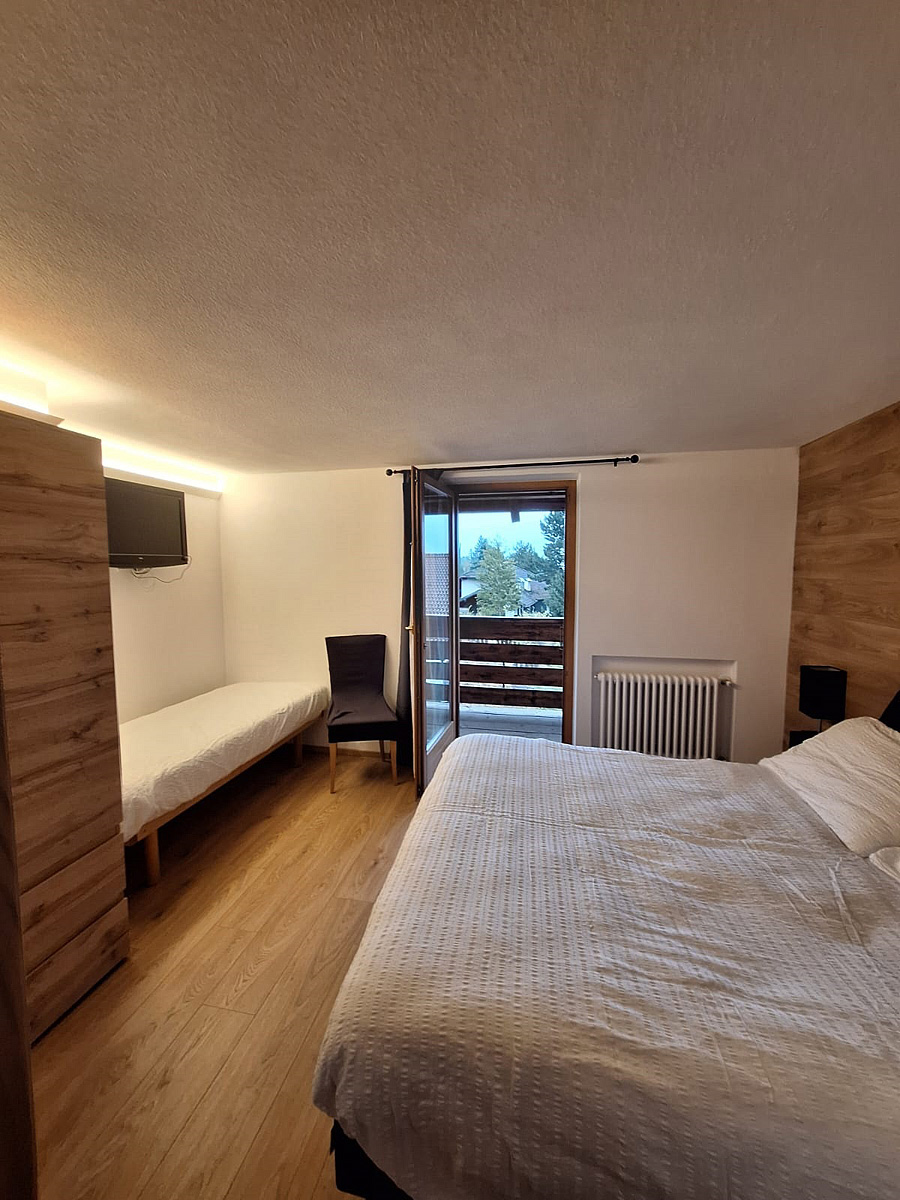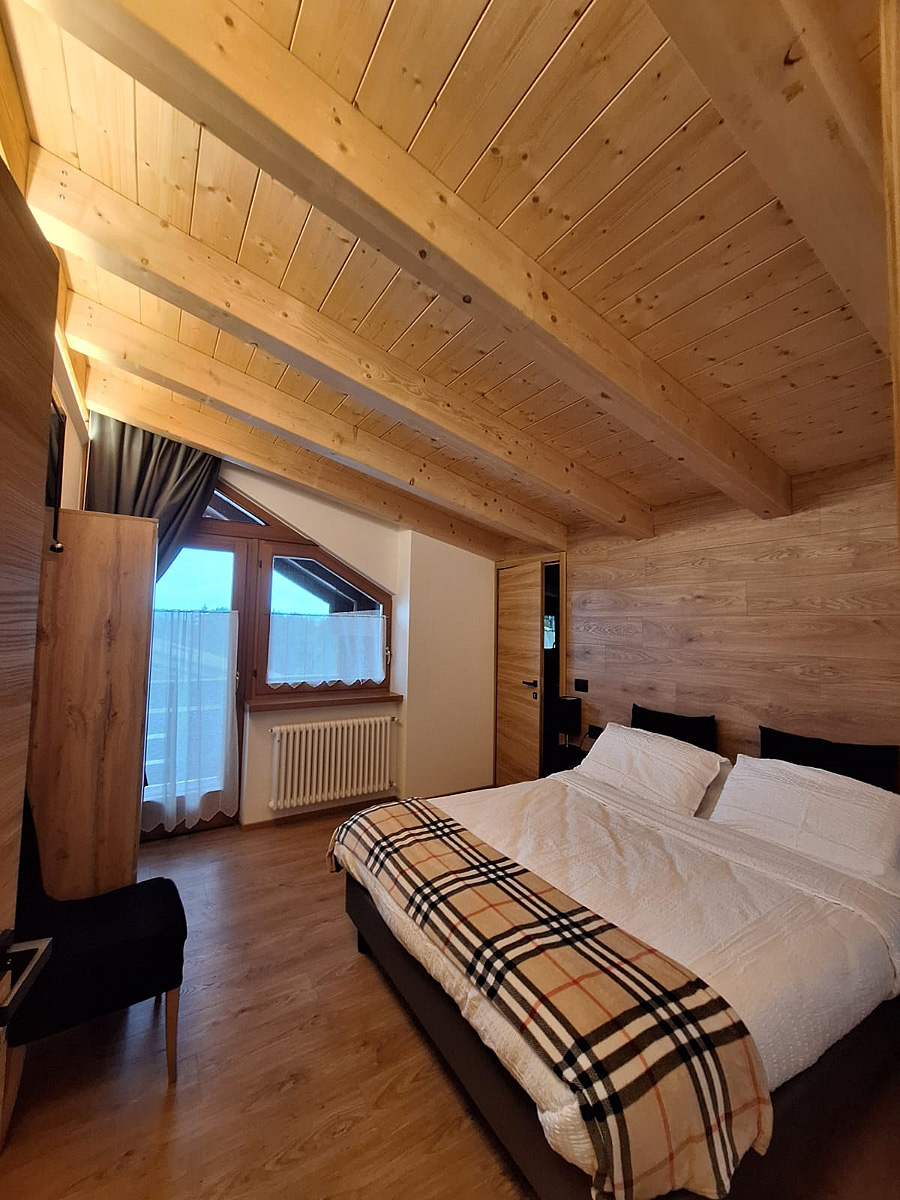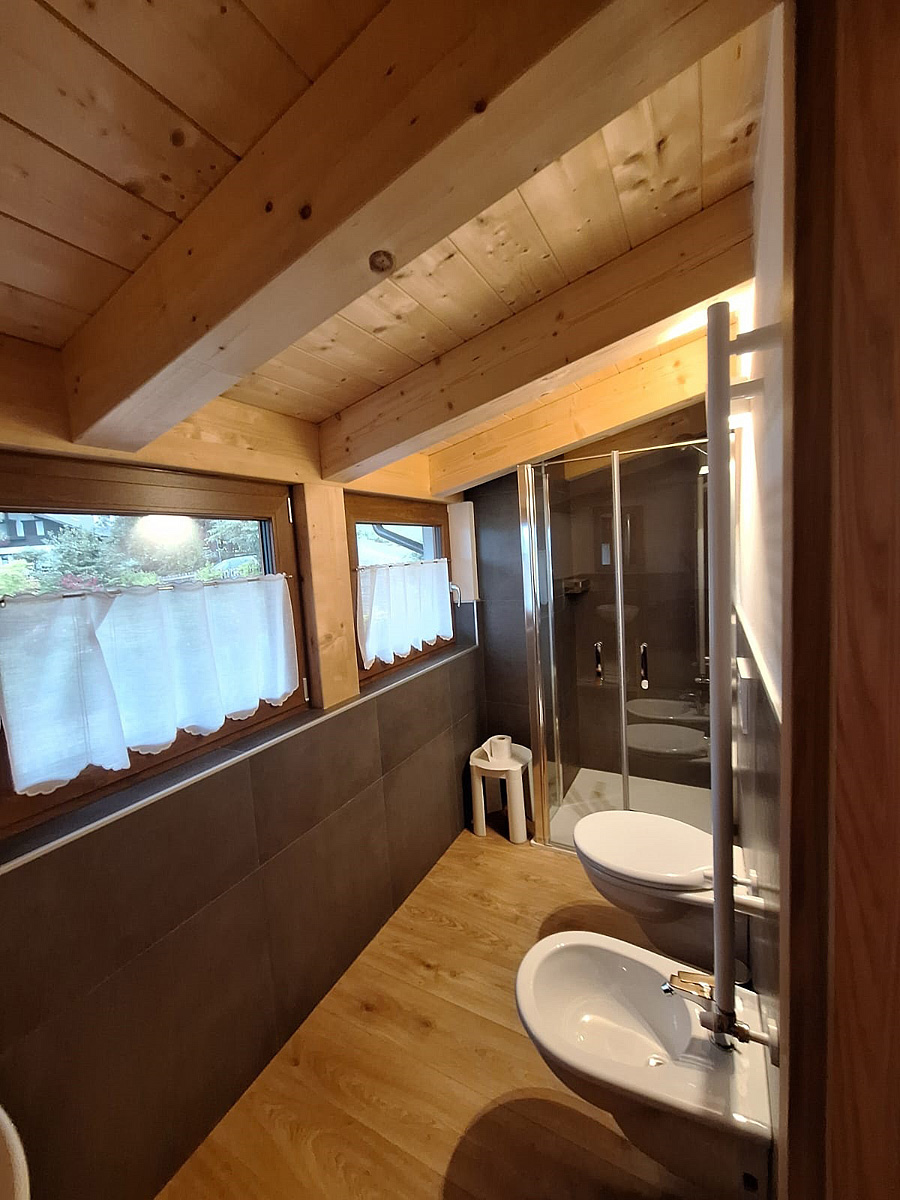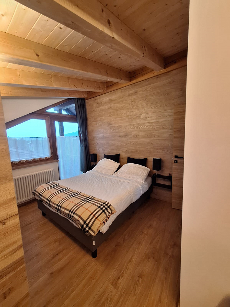 Chalet skládající se ze 4 pokojů v rámci dvou pater, společné jídelny s kuchyňkou a obývacího koutu, každý pokoj má vlastní sociální zařízení a balkon.